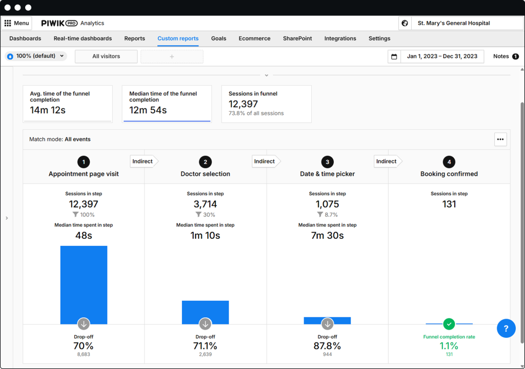 Google Analytics does not offer a BAA and is not HIPAA-compliant. Using it puts healthcare organizations at serious risk of regulatory violations and loss of patient trust. Piwik PRO provides the familiar analytics experience you’re used to, with full HIPAA compliance, a BAA tailored to your needs, and the ability to work with actual patient data rather than anonymous or fragmented information.