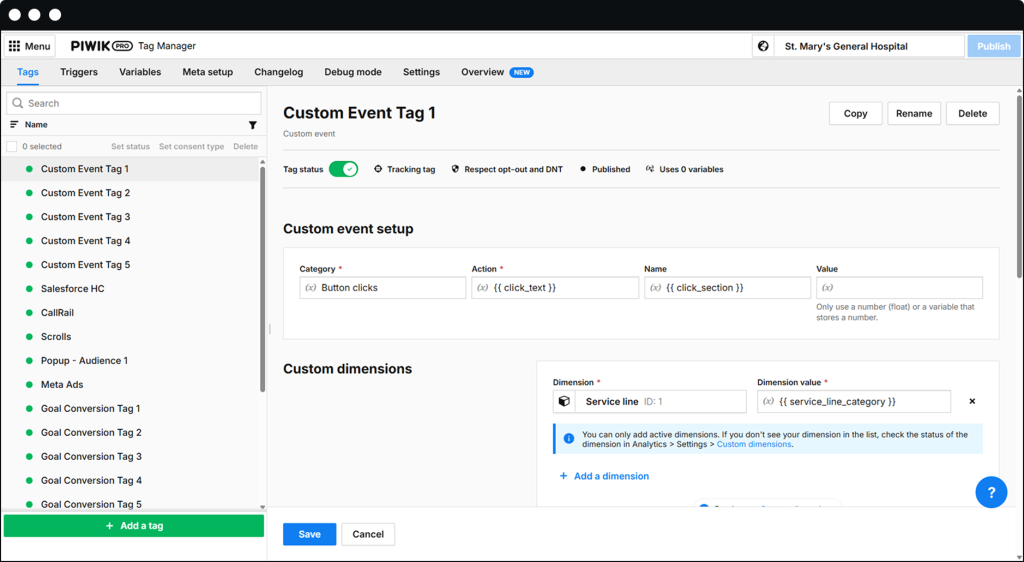 Deploy and manage your marketing tags safely – with controls that ensure that your tags and pixels fire in a HIPAA-compliant way.